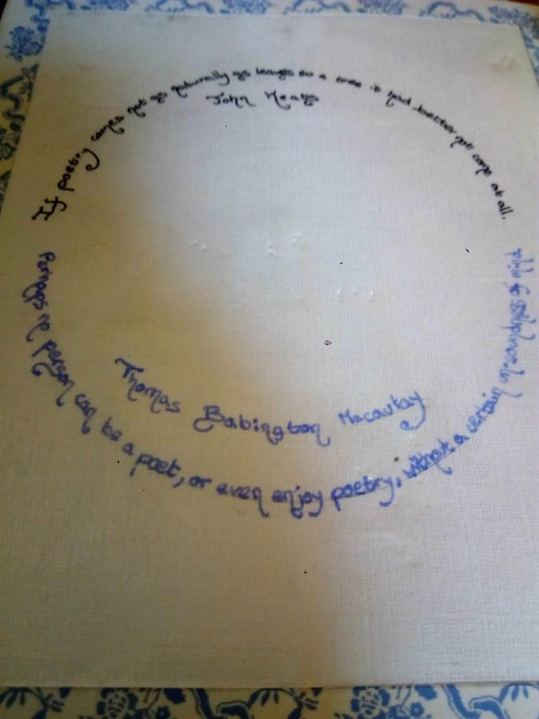 I rather like the quotation I featured on the back cover, from Lord Macaulay: ‘Perhaps no person can be a poet, or even enjoy poetry, without a certain unsoundness of mind’. That struck me as apt when I was 11, and I can’t say that I disagree now. Under the circumstances, though, I think that ‘a certain unsoundness of mind’ is probably a positive attribute, and one I wouldn’t want to be without. So this weekend I wish you all just enough unsoundness of mind to have a pleasant week!