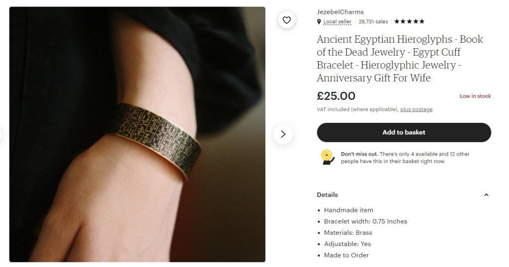 Egyptian Book of the Dead Bracelet – Etsy (I have the Carpe Diem one – because it’s not a cliche if you love Horace…)