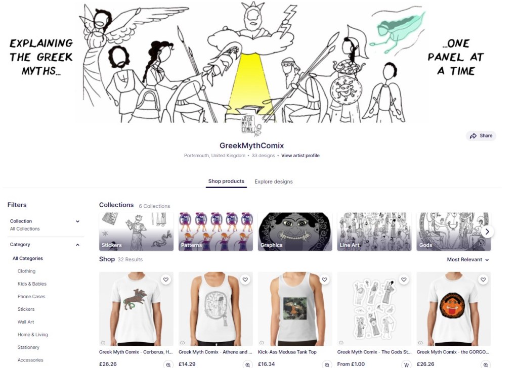 Greek Myth Comix: a great selection of fun myth-related designs from Laura Jenkinson-Brown.