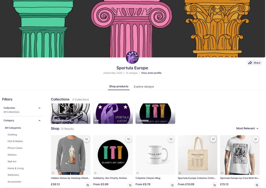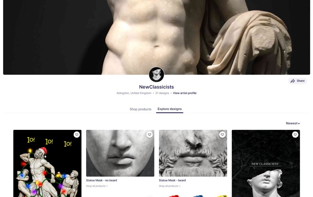 Here are links to some stores run by classicist-artists. When you buy an item from a Redbubble store, a small amount of the purchase price goes directly to the artist or to their Classics organisation.