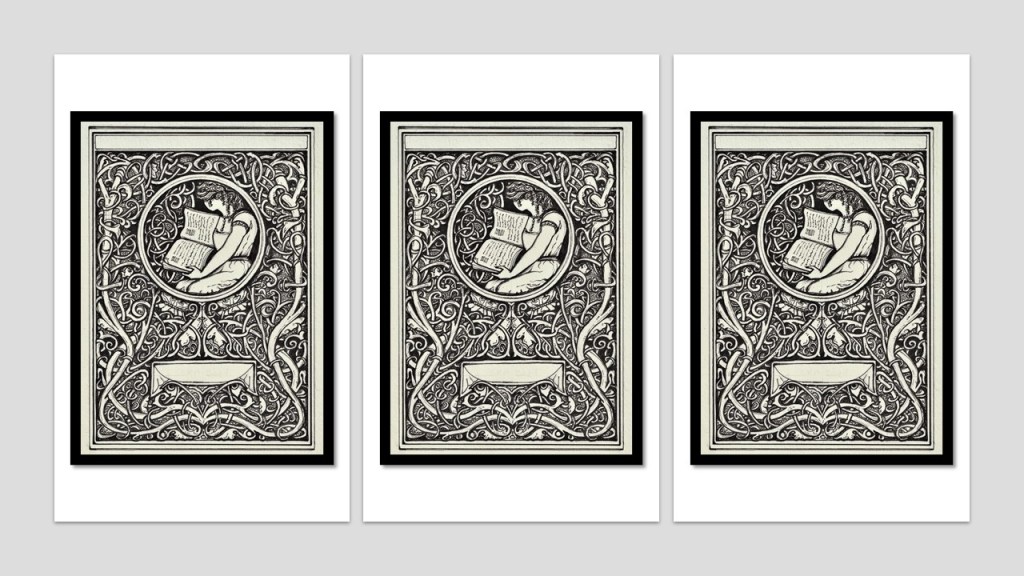 Recently I’ve been designing author bookplates. Under the current circumstances everyone seems to agree that book-signing events are a Very Bad Idea, so increasingly authors are writing messages on bookplates and posting them out to the people who would have attended the book signings (I’ve just requested one from Adrienne Mayor, to put in my copy of her book). So bookplates are in demand, for once! I’ve designed bookplates for two wonderful poets in the past couple of weeks, and it’s lovely to think that my designs will be sent out all over the world for people to put in their books!