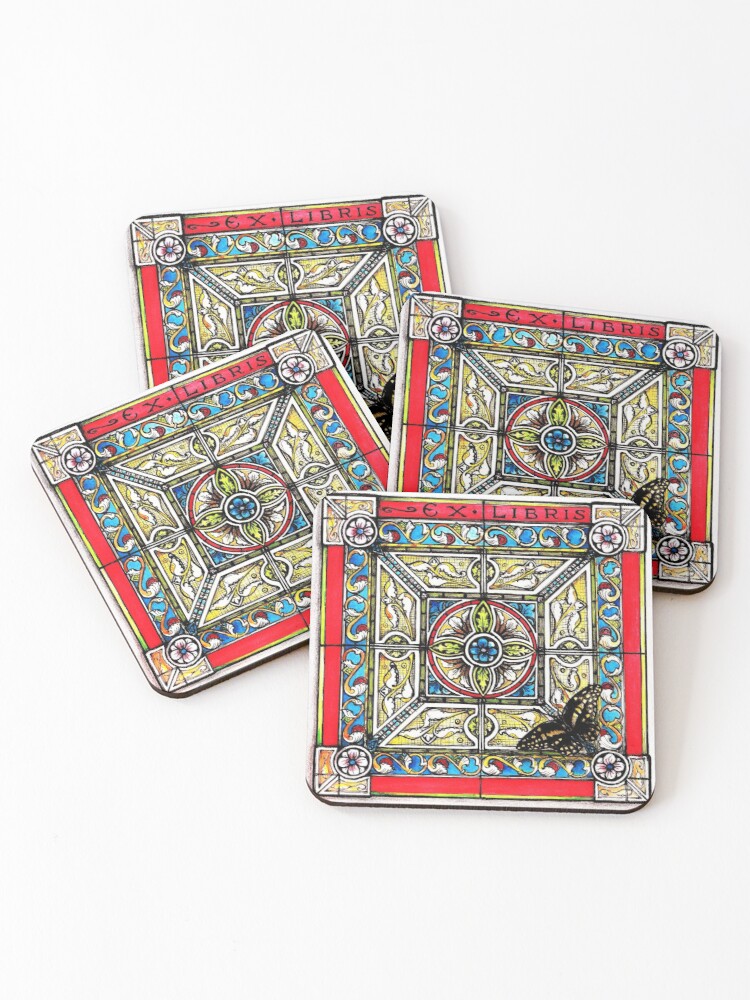 This started out as a doodle, copying some of the patterns from the stained glass window in my library. Then I got bored one day and started experimenting with a little palette of children’s watercolours I had lying around. It ended up turning into quite a cheerful design for bags and coasters – but I’ve come to the conclusion that I don’t have the subtlety necessary for watercolours!