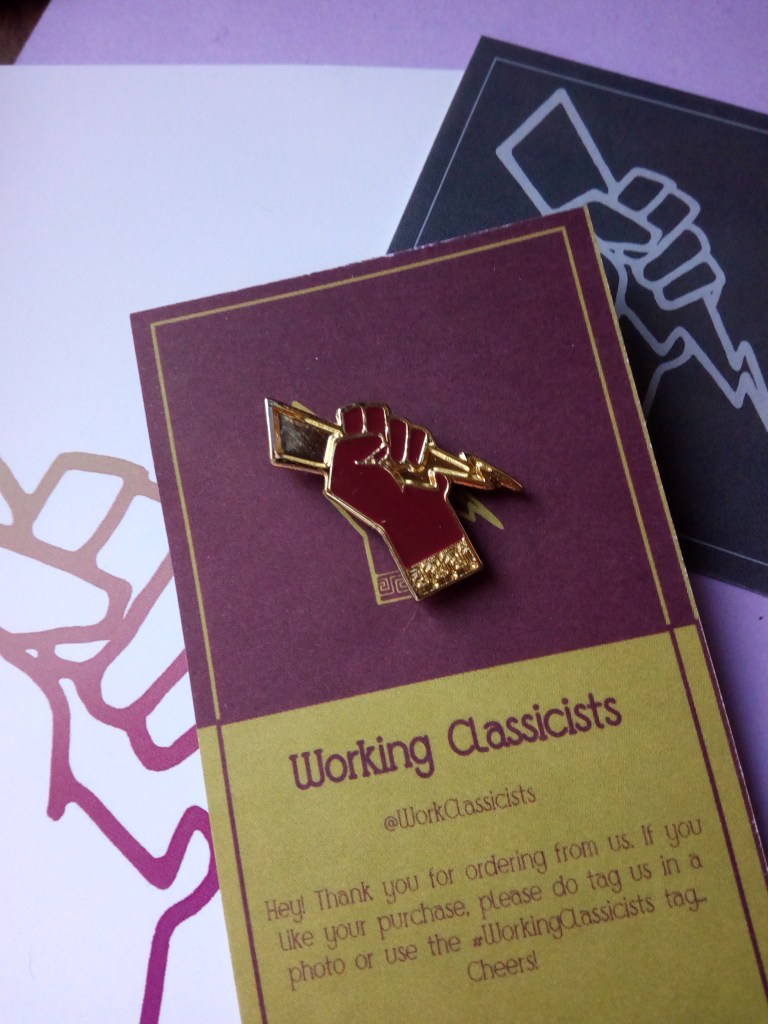 My Working Classicist badge, which I wear with pride!