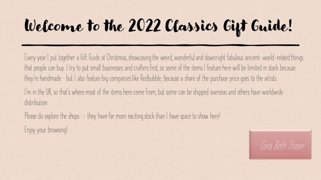 It’s finally here! The annual Classics Christmas Gift Guide, produced by me over the course of many arduous hours of online window-shopping (well, there may have been a few things that accidentally slipped into my shopping cart…!). You can browse the pages below: but for clickable links, feel free to download the PDF version.
