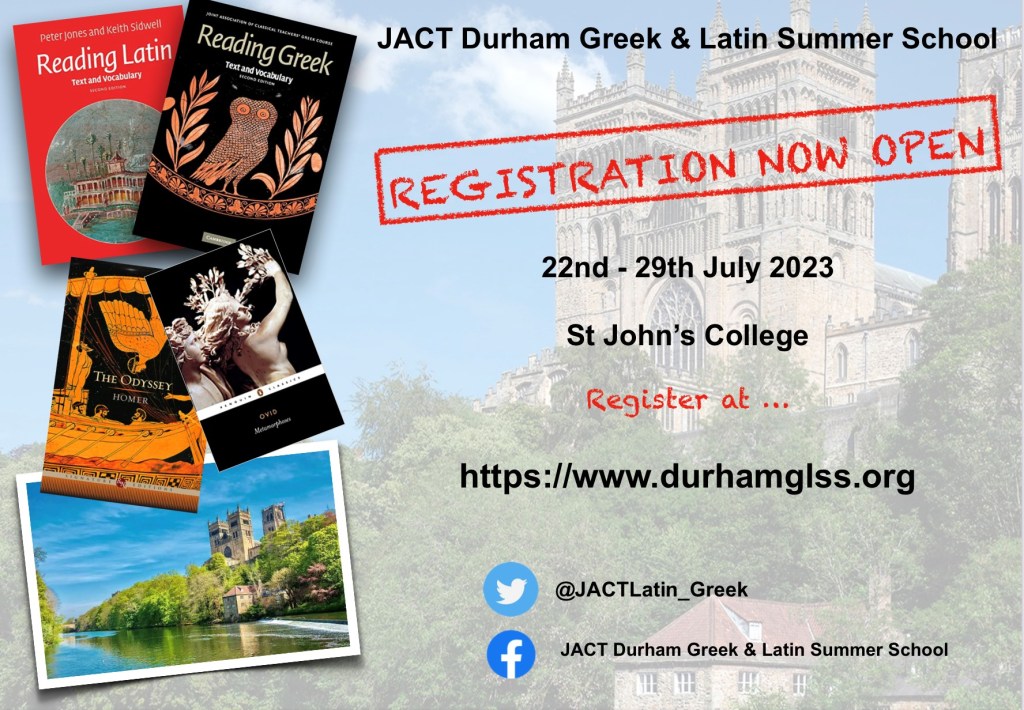 Full details of the JACT Durham Greek & Latin Summer School, including how to register, can be found on our new website: https://www.durhamglss.org/