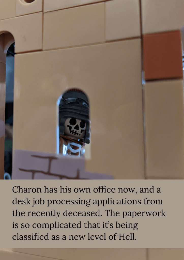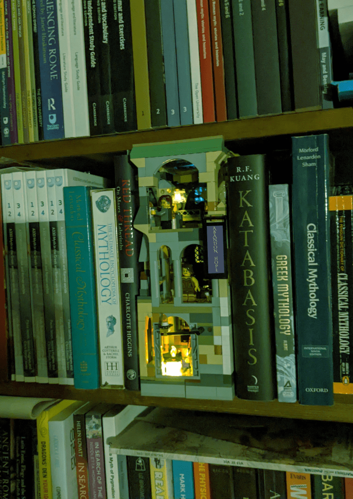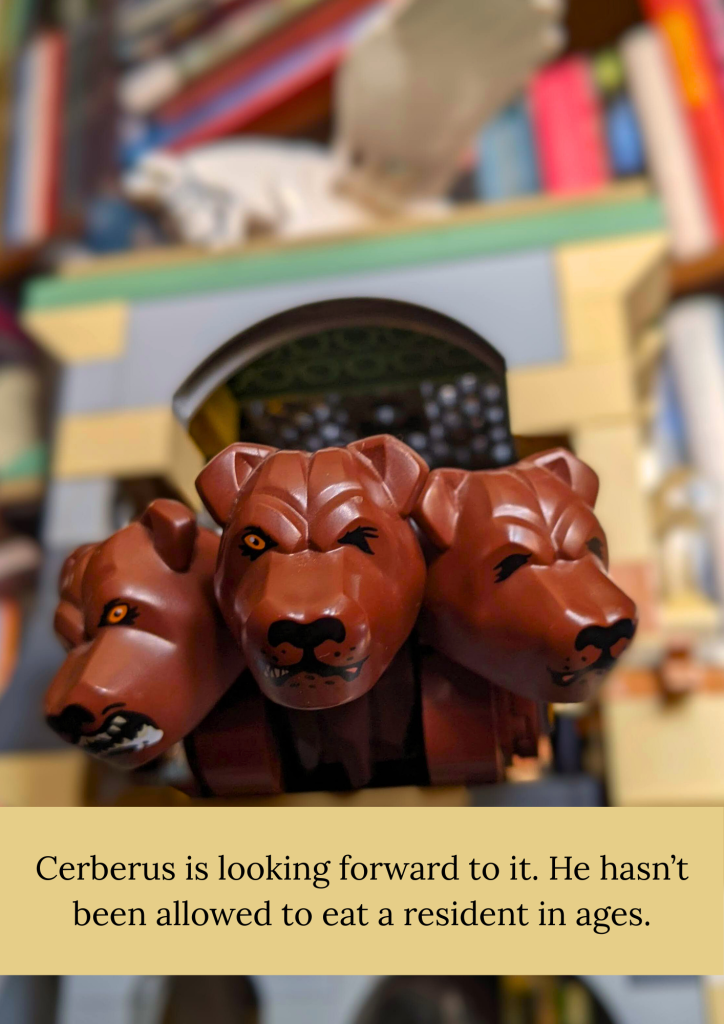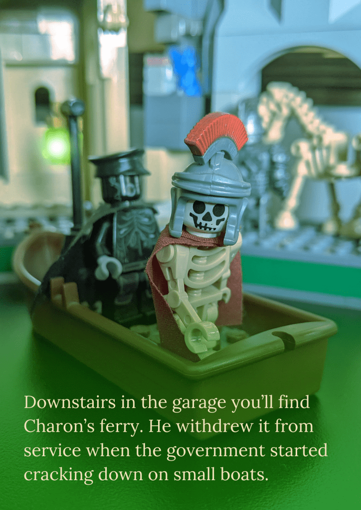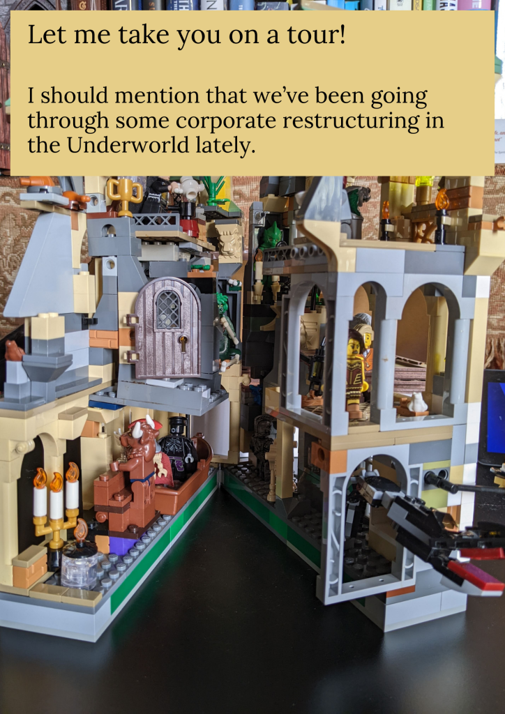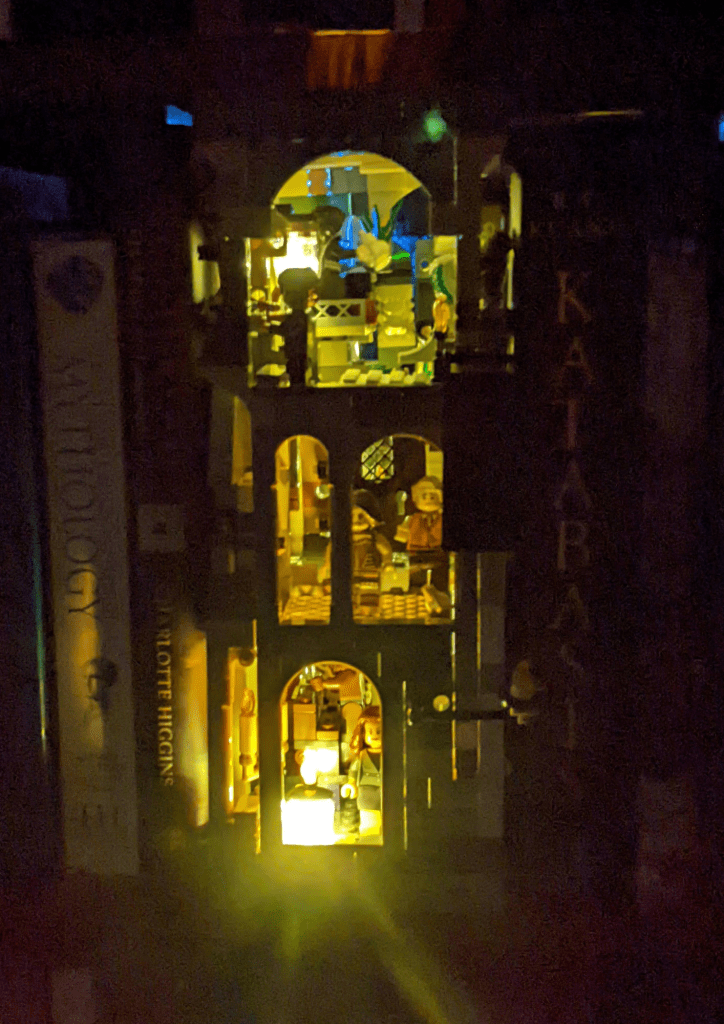 So for International LEGO Classicism Day 2026, let me take you on a tour – a katabasis, if you like – of my very own shelf-sized miniature light-up Underworld.