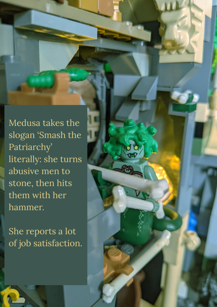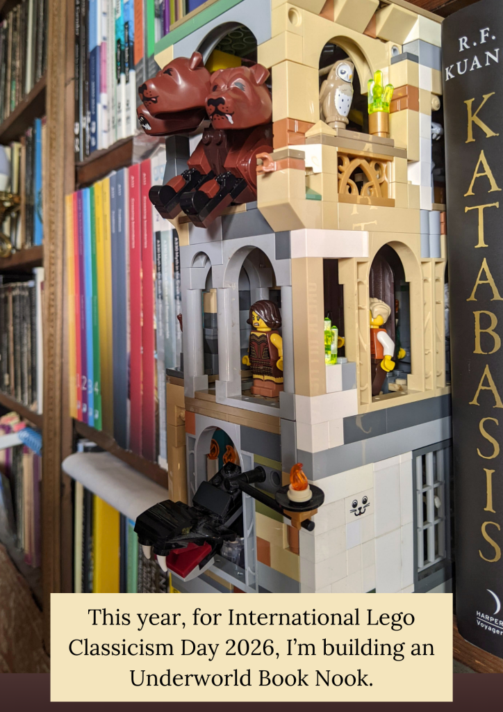 Well, it turned out to be quite easy to resist, because the LEGO kits (which so far cover Sherlock Holmes, The Lord of the Rings and Harry Potter) are too pricey for my budget. But they gave me ideas for this year’s International LEGO Classicism Day. Maybe I could build my own Myth Nook…